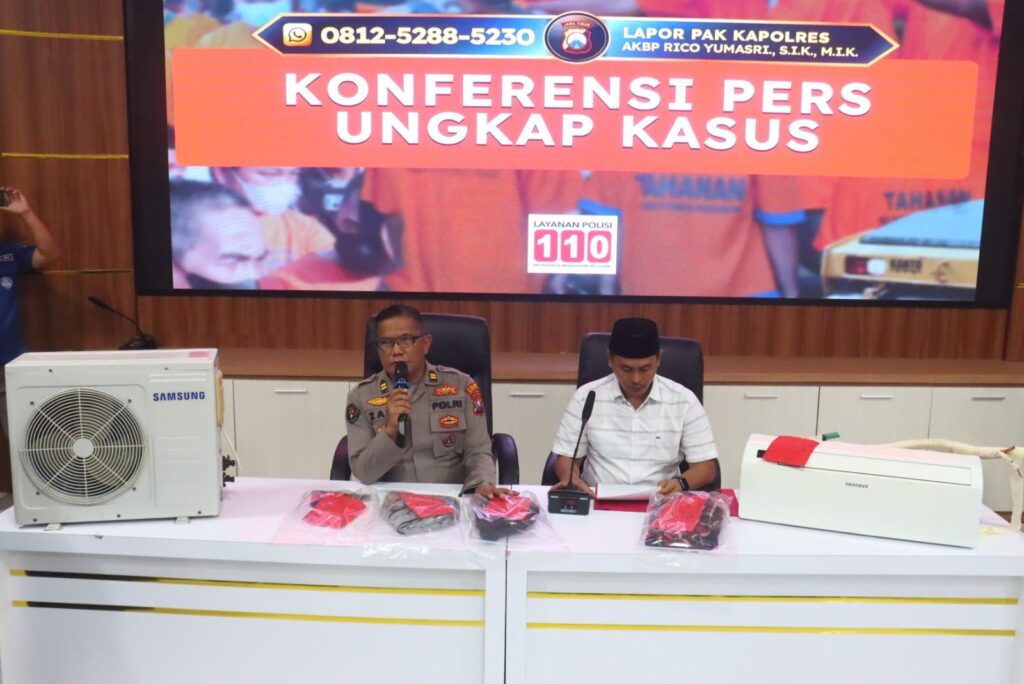 Dari tangan tersangka, polisi menyita 1 unit AC Samsung ½ PK (indoor dan outdoor), sepeda motor Honda CB150R yang digunakan saat beraksi, serta sejumlah alat seperti obeng dan tang.